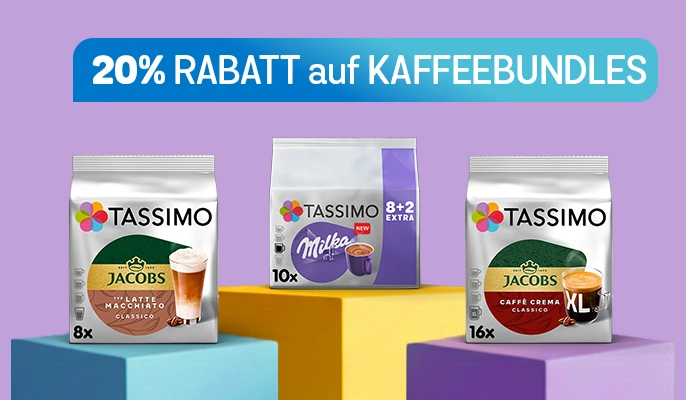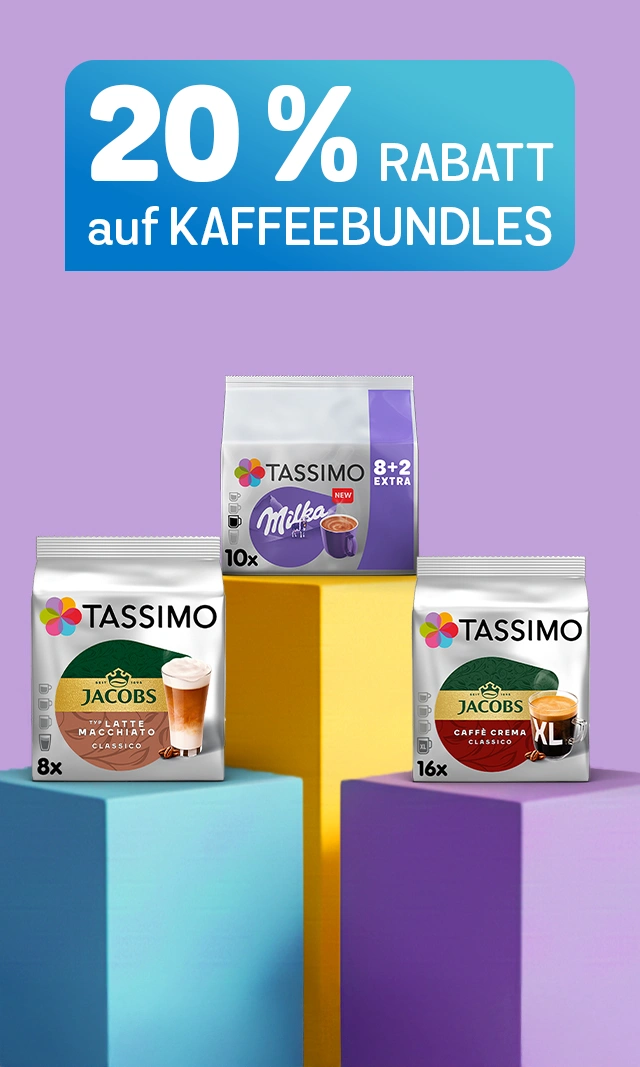 Du bist auf der Suche nach einem Rabatt für TASSIMO Kaffeekapseln? Hier bist du richtig! Hier findest du alle aktuellen Kaffeekapsel-Angebote und Aktionen von TASSIMO. Von günstigen Kaffeekapseln bis hin zu kompletten TASSIMO Deals, einschließlich Maschinenpaketen im Angebot. Bei TASSIMO kannst du auch Multipacks wählen, TASSIMO Kapseln in großen Mengen kaufen oder dich für Kaffeevielfalt-Pakete entscheiden, um den Preis noch weiter zu senken. Bei TASSIMO findest du deine Lieblingsprodukte zum besten Preis.