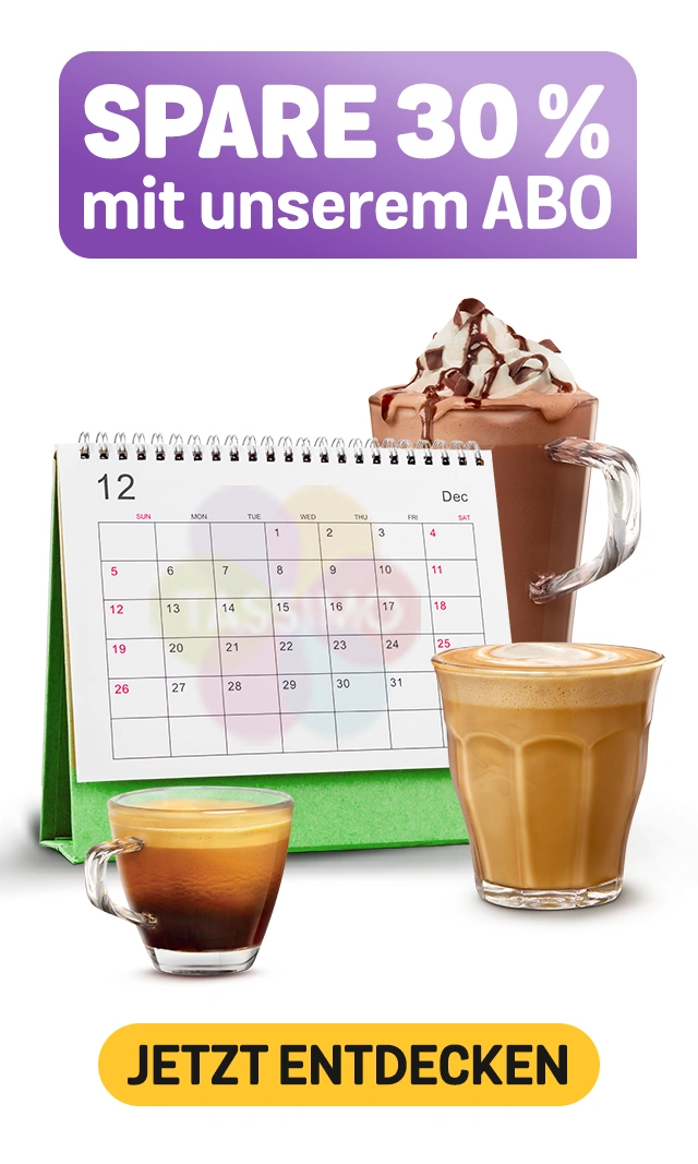 Mit einem TASSIMO Abo bekommst du 30 % Rabatt – flexibel und unkompliziert. Dein Abo kannst du jederzeit ändern, pausieren oder ganz einfach kündigen.