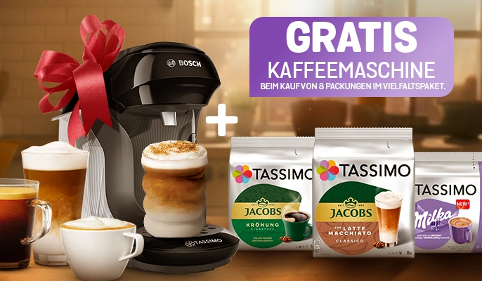 Bei uns findest du regelmäßig großartige Angebote auf eine Vielzahl von TASSIMO Maschinen im Angebot. Unsere Aktionen umfassen sowohl Einzelmaschinen zu stark reduzierten Preisen als auch attraktive Bundles, bei denen du eine Kaffeemaschine kostenlos erhältst. Besonders in einigen TASSIMO Maschinen-Bundles erhältst du beim Kauf von Kaffeekapseln eine TASSIMO Maschine gratis dazu. Diese Bundles bieten dir die Möglichkeit, gleichzeitig bei den Kapseln und der Maschine zu sparen.