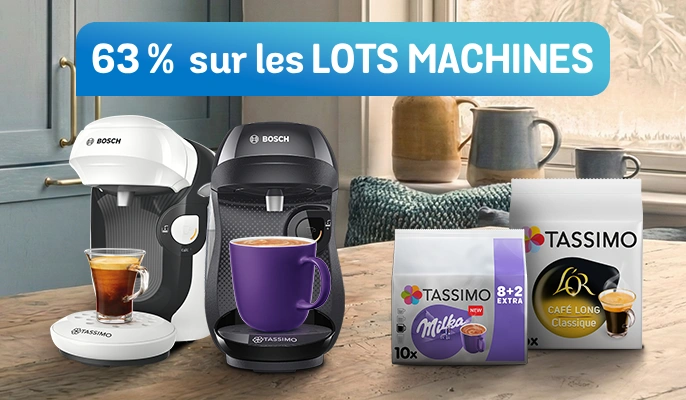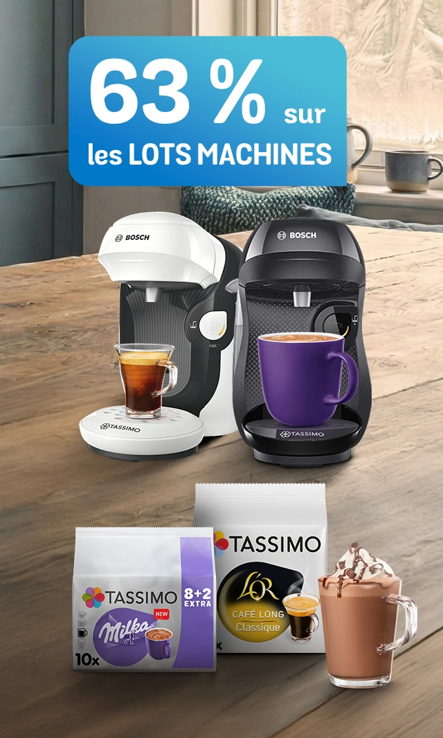 Retrouvez ici toutes les promotions TASSIMO en cours : réductions sur les machines à café à dosettes, offres spéciales sur les dosettes de café, et packs combinés machines + boissons. Grâce aux TASSIMO promo, profitez de vos boissons préférées à prix mini, et parfois même de TASSIMO gratuite selon les offres. Ne payez plus jamais le prix fort !