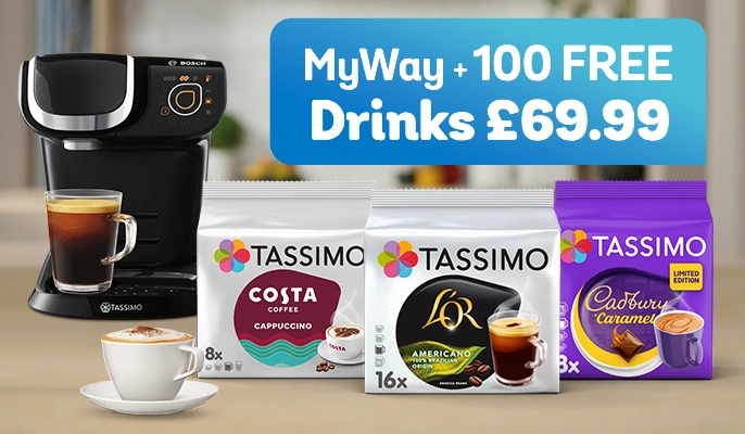 TASSIMO Happy machines are very easy to use. All of your favourite beverages can be prepared with the push of a button. Insert T DISC, press once, and wait briefly until the machine warms up. The TASSIMO Happy pod coffee scans the barcode on the coffee pod after insertion and automatically goes about perfectly preparing your hot beverage. All thanks to TASSIMO's INTELLIBREW™ barcode technology. The adjustable shelf allows for different-sized cups and glasses. To clean the TASSIMO Happy coffee pod machine or for further troubleshooting, please refer to the complete instructions or discover how to descale your machine. The TASSIMO Bosch Happy coffee machine is available online at TASSIMO. So you can order this TASSIMO Bosch machine online and it will be delivered to your home.