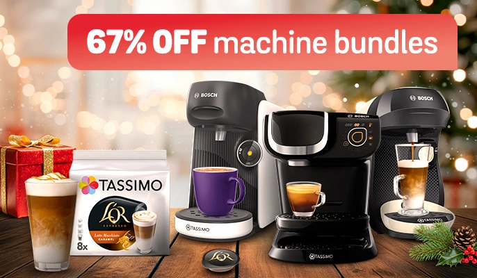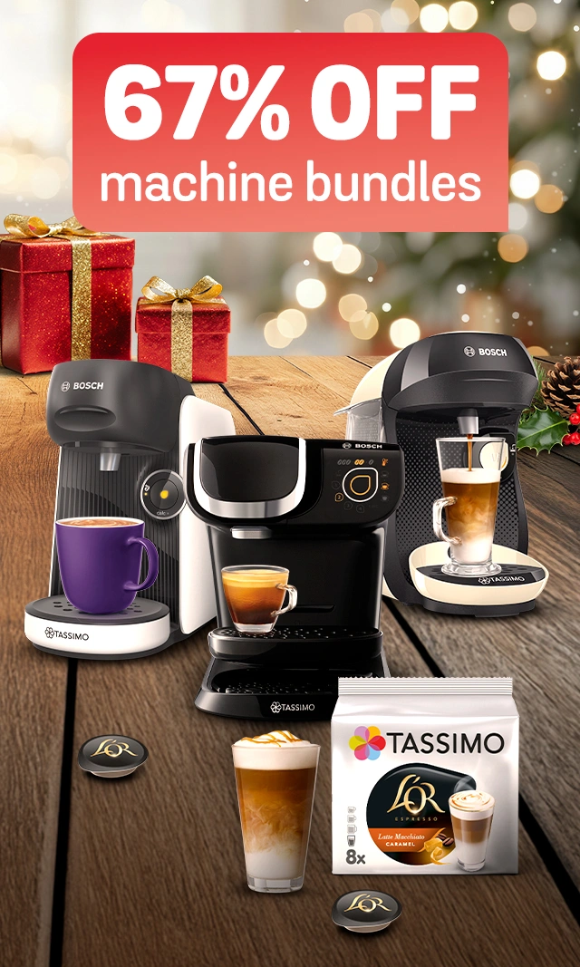 Discover online deals on TASSIMO by Bosch coffee machines and save money. Here, you’ll find the most affordable TASSIMO Bosch coffee pod machines on the market in a broad variety of sizes, colours, and price points. To stay updated on our latest offers and promotions, join the TASSIMO family by signing up for our newsletter.